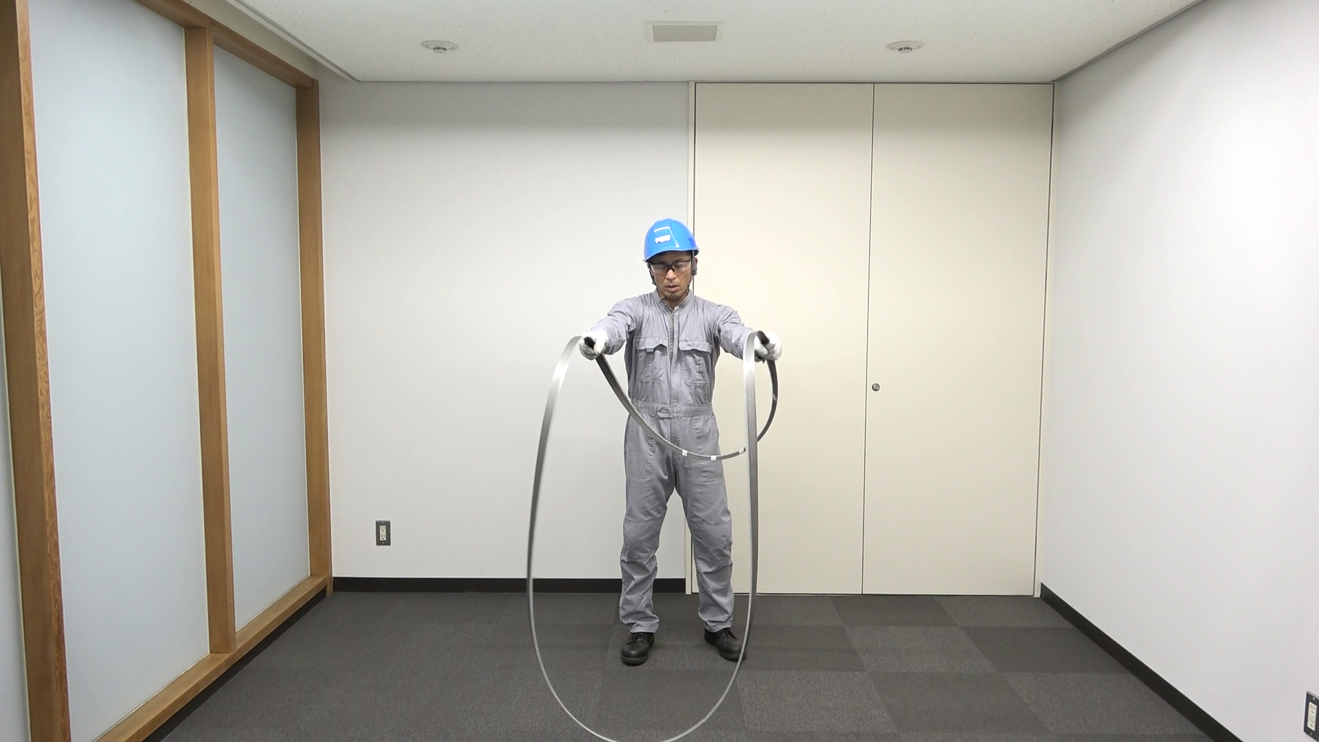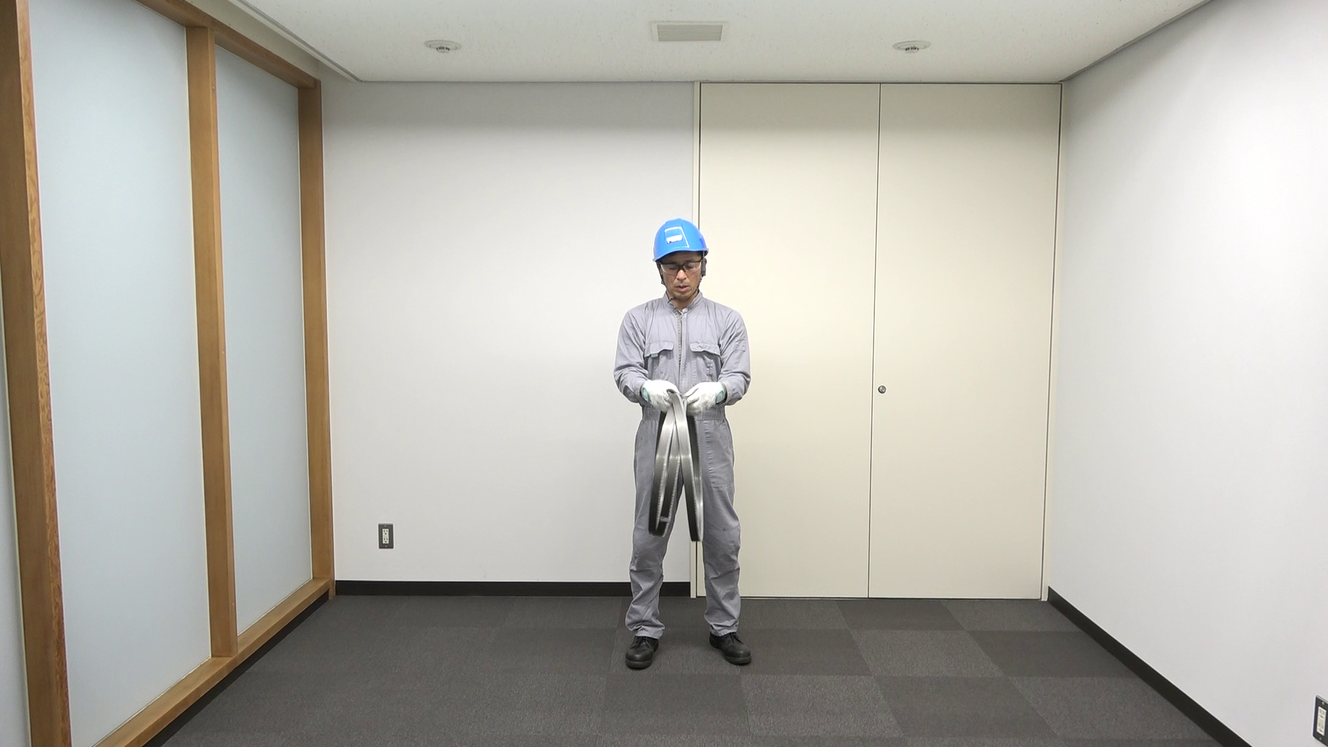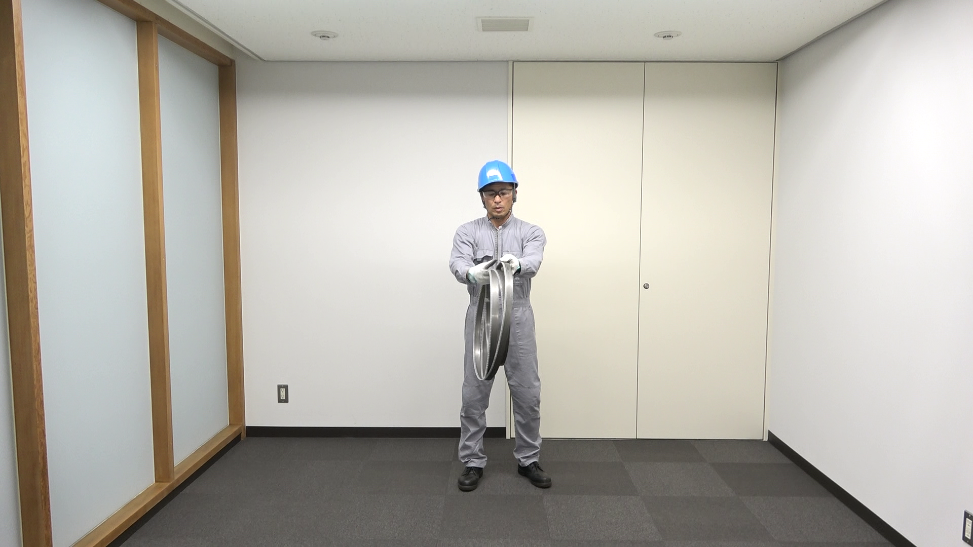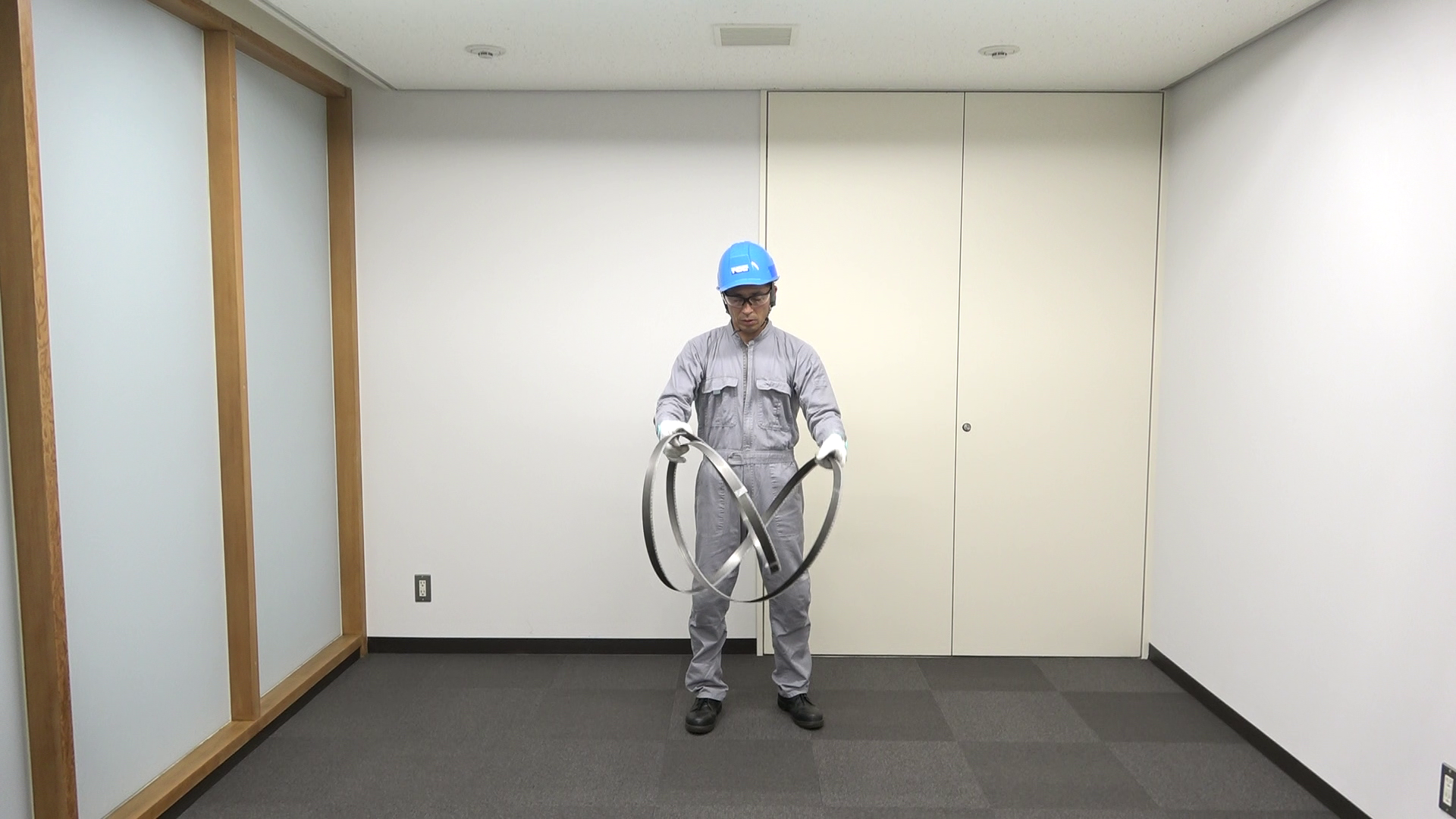 比較的問い合わせの多い、帯鋸刃の開き方、たたみ方について簡単にレクチャーいたしました。刃物ですので、取扱には細心の注意が必要です。動画では、保護眼鏡、ヘルメット、革手袋、安全靴を着用しております。